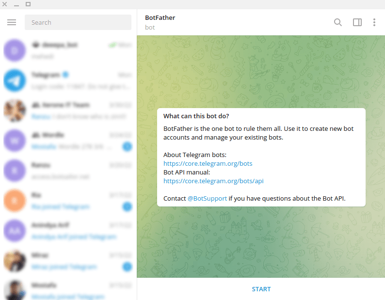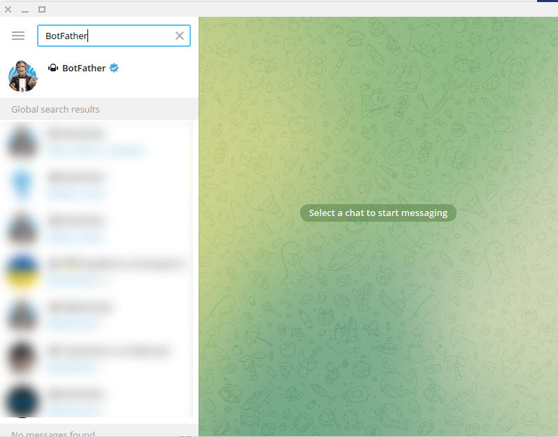 To build a Telegram bot with BOTFORCE, first, open your Telegram App. Then in the search bar of the app, search with the ‘BotFather’ keyword. Then select the verified BotFather account.