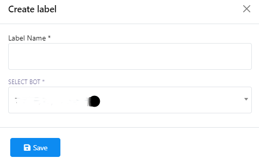 - After clicking, youll be prompted to provide a title for the label and select a bot from the dropdown menu.
