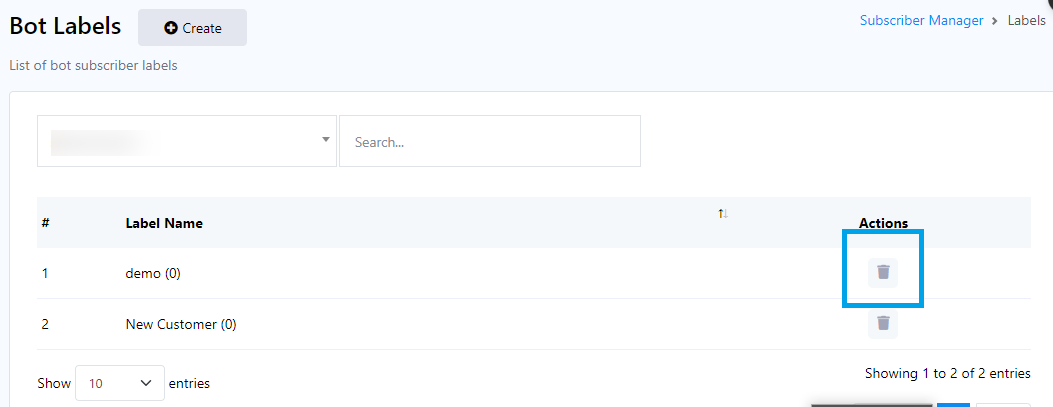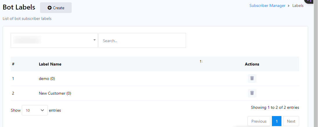 - If you wish to associate a label with a specific bot, click on the dropdown menu, and after selecting a bot, the associated labels for that bot will be displayed below.