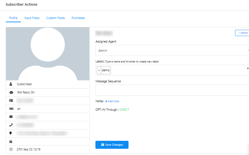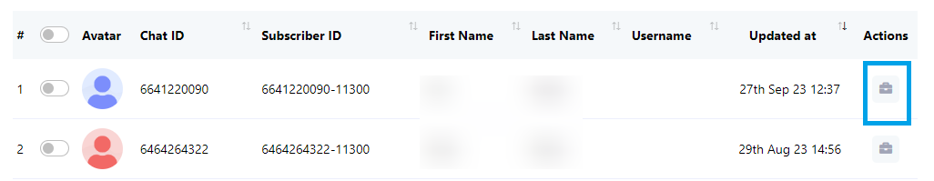 - In the modal, you can perform various actions, including unsubscribing a subscriber, pausing or resuming the bot`s replies, resetting the user`s input flow, or syncing subscriber data.